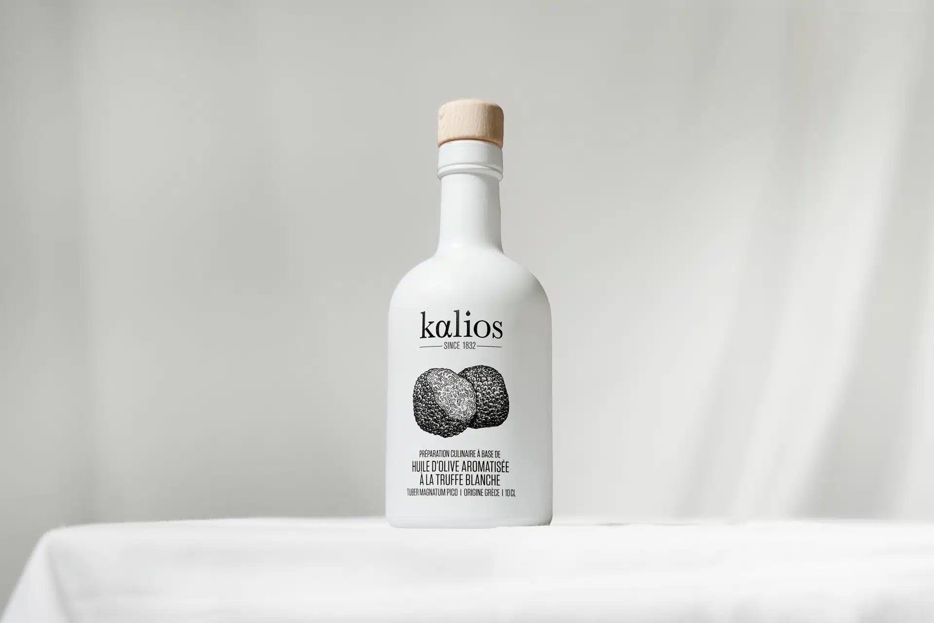 Découvrez l’élégance aromatique de l’huile d’olive à la truffe blanche signée Kalios, une création raffinée qui sublime instantanément vos plats.